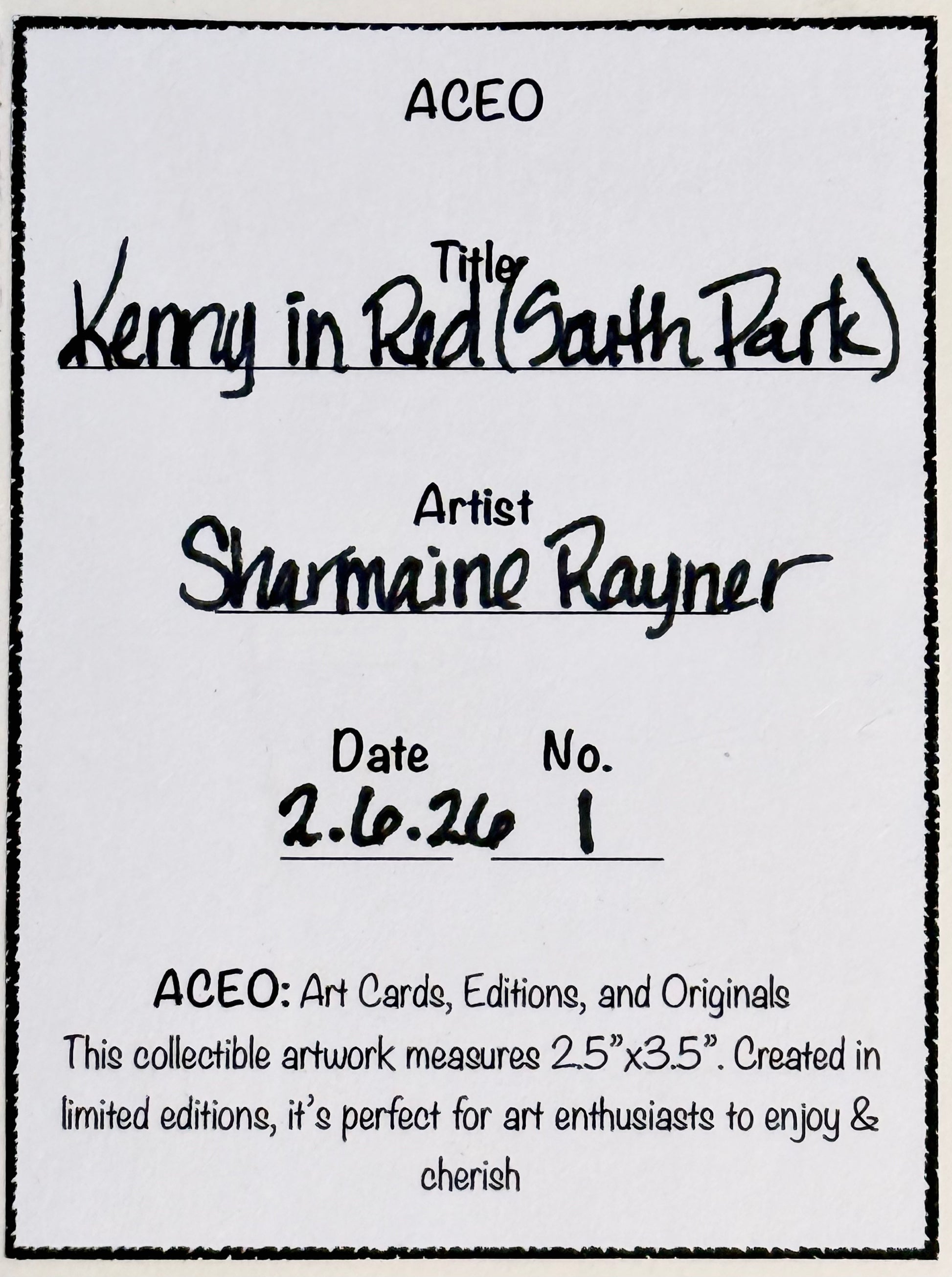 Kenny In Red (South Park) ACEO Card Mini Handmade Original Collectible Art by Sharmaine Rayner.