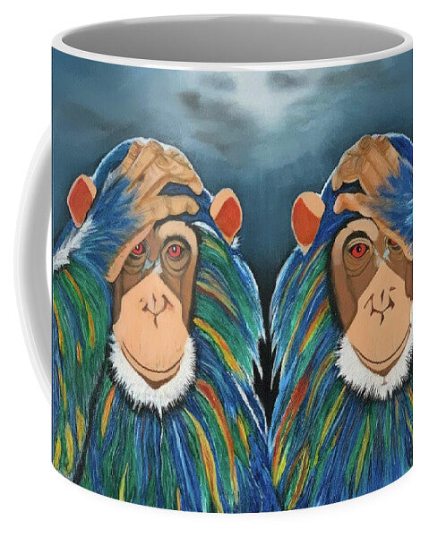 Our ceramic coffee mugs are available in two sizes: 11 oz. and 15 oz. Each mug is dishwasher and microwave safe. These adorable Monkeys In The Rain make a great gift for all occasions including birthdays, housewarming, Father's Day, Mother's Day, Christmas, Hanukkah, or just because...